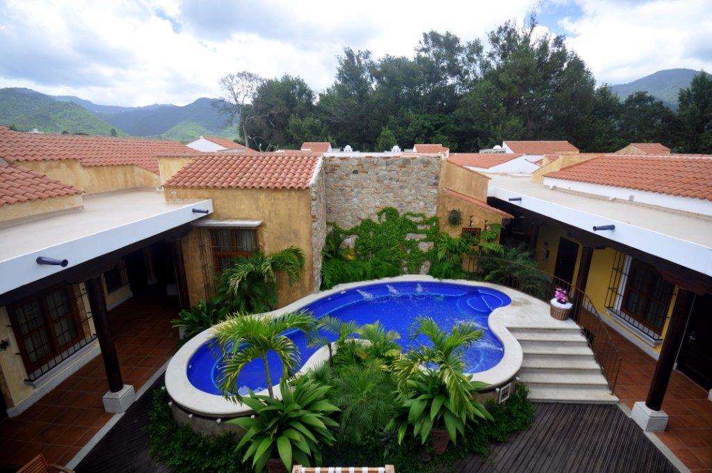 The hotel is part of the chain which also has hotels in Guatemala City and close to Tikal in the northern rainforest. The hotel offers visitors the comfort of a high-end hotel with the charm of colonial style decoration. The rooms are located around 5 lit and airy patios and there is also a restaurant, bar, jacuzzi, and conference & meeting facilities. There are 3 different room styles: Master Suites, Junior Suites and the Standard Deluxe rooms.