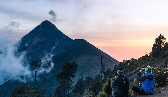 Your volcano adventure starts early when a private guide meets you at your hotel around 05:00 for a minibus transfer to the trailhead of Acatenango, Central America’s third highest volcano at 3,976 metres (13,045 feet). NOTE: the trailhead we start at is about 1/2 up the volcano so we are not trekking the entire height!